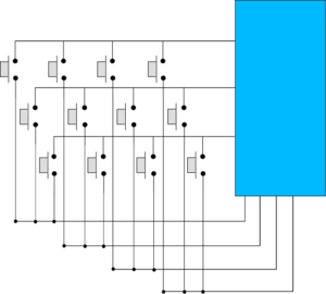 [[Image:keypad.svg|thumb|Example of a 3x4 keypad]] | [[Image:keypad.svg|thumb|Example of a 3x4 keypad]] | ||