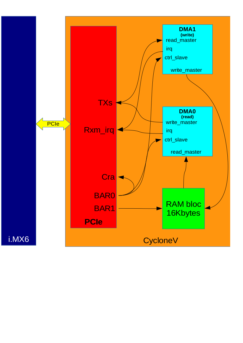 The reading DMA block is used to transfert data from the Block of ram in FPGA (CycloneV) to the DDR3 in the processor (i.MX6).